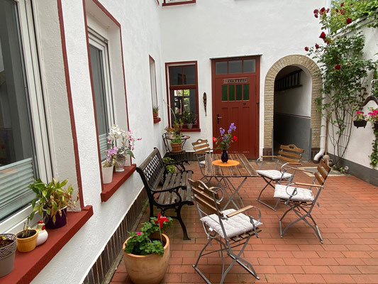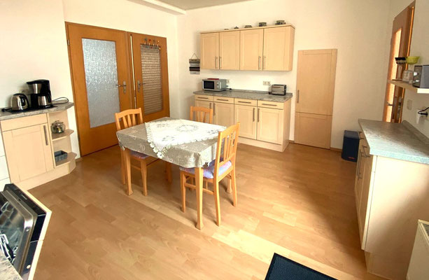 Wir bieten eine schöne 3 Zimmer Ferienwohnung mit kompletter Ausstattung: Ein Schlafzimmer mit zwei getrennten Betten, ein Wohnzimmer mit gemütlicher Schlafcouch, einem Flachbild-TV sowie einem zusätzlichen Ofen, eine voll ausgestattete Küche mit Essbereich, einen Aufenthaltsraum mit Stau- und Ablagemöglichkeiten sowie ein Badezimmer mit Duschwanne und einer Waschmaschine. Für unsere Gäste gibt es im Innenhof eine Sitz- und Essmöglichkeit direkt neben unserer historischen Werkstatt. Natürlich haben Sie auch die Möglichkeit, einen Einblick in diese Werkstatt zu bekommen. Kostenloses WLAN und PKW Parkplätze sowie eine Ladestation für E-Bikes stehen ebenfalls zur Verfügung. Auch bieten wir für Familien mit kleinen Kindern ein Babybett zum Zustellen an.